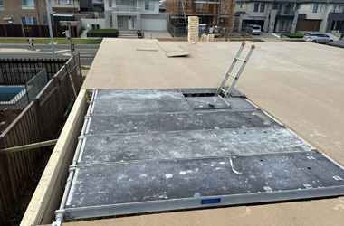 Void protection secures open spaces like stairwells or shafts, preventing falls and ensuring a safer work environment during construction.